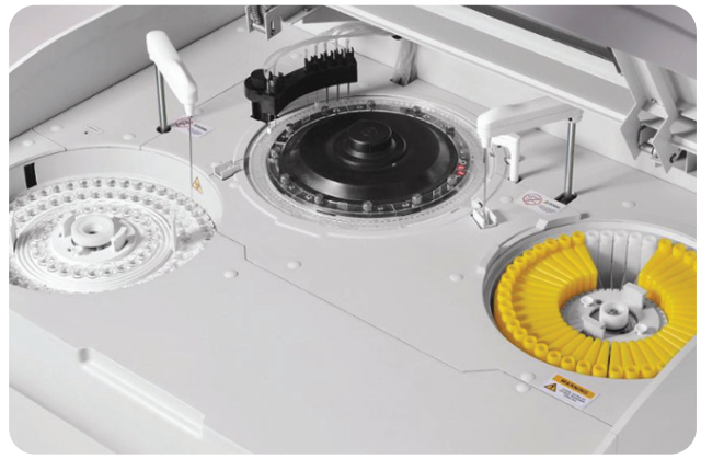 - Vị trí mẫu: 115 vị trí mẫu, bao gồm 50 vị trí mẫu thường quy, 20 vị trí STAT, 34 vị trí hiệu chuẩn, 8 vị trí QC, 3 vị trí đặt đế rửa. Làm mát liên tục ở các vị trí hiệu chuẩn và QC để giữ 5-15oC trong vòng 24 giờ.